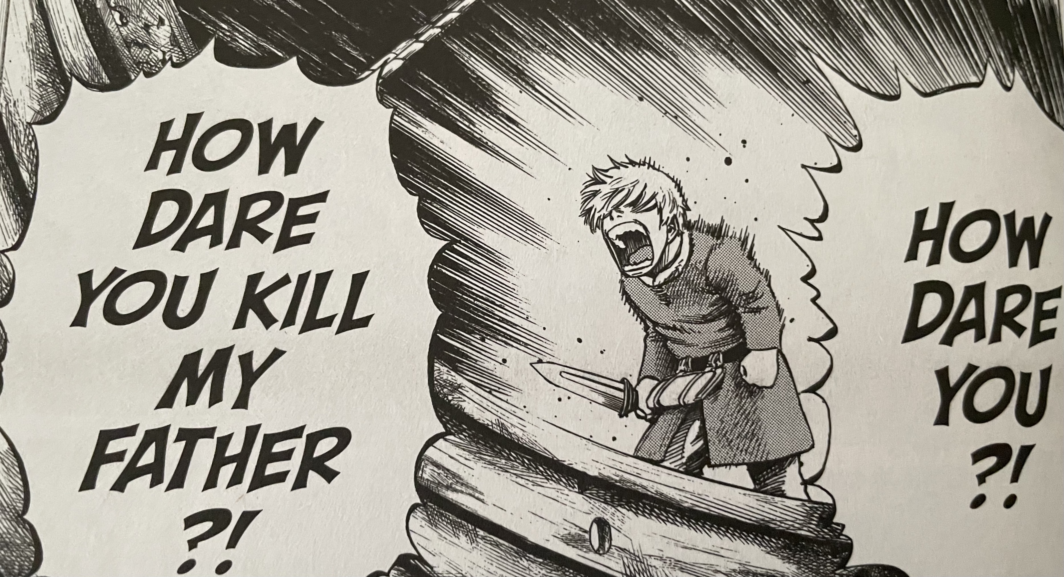 When I finally started reading Vinland Saga, I didn’t have an issue with adjusting to the right-to-left reading in manga. The storytelling and illustration styles in the series were a little jarring at first, though. Yukimura’s drawing style is a little more cartoony (imprecise word) than what I’m used to, especially in Bronze Age and Modern Age comic books (Silver Age can get cartoony but in a different way). I’m not saying it’s bad. It just didn’t always seem to go with what were supposed to be emotional scenes.