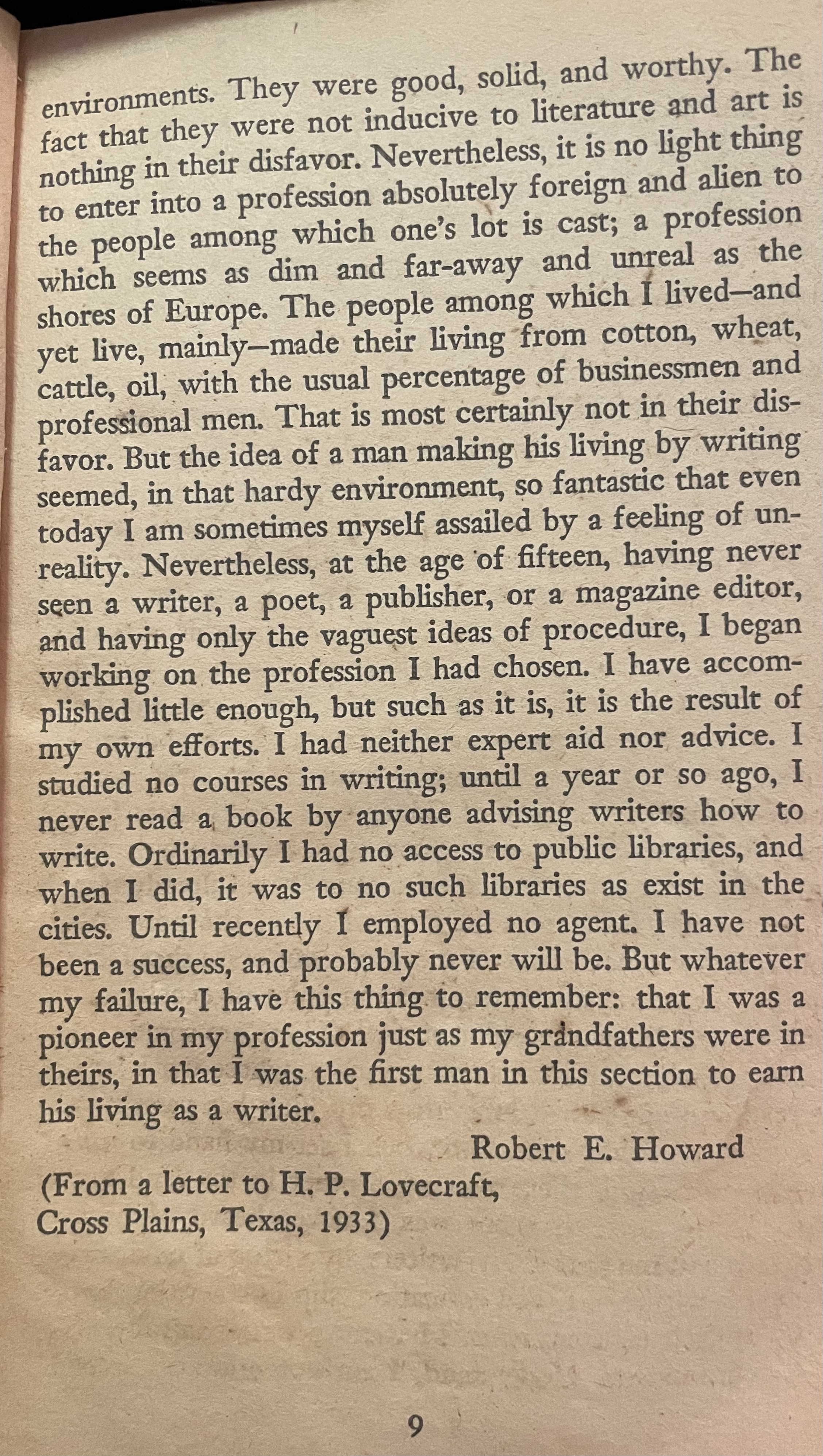 In a letter to famous author H.P. Lovecraft in 1933, Robert E. Howard described how he thought of himself as a writer .
