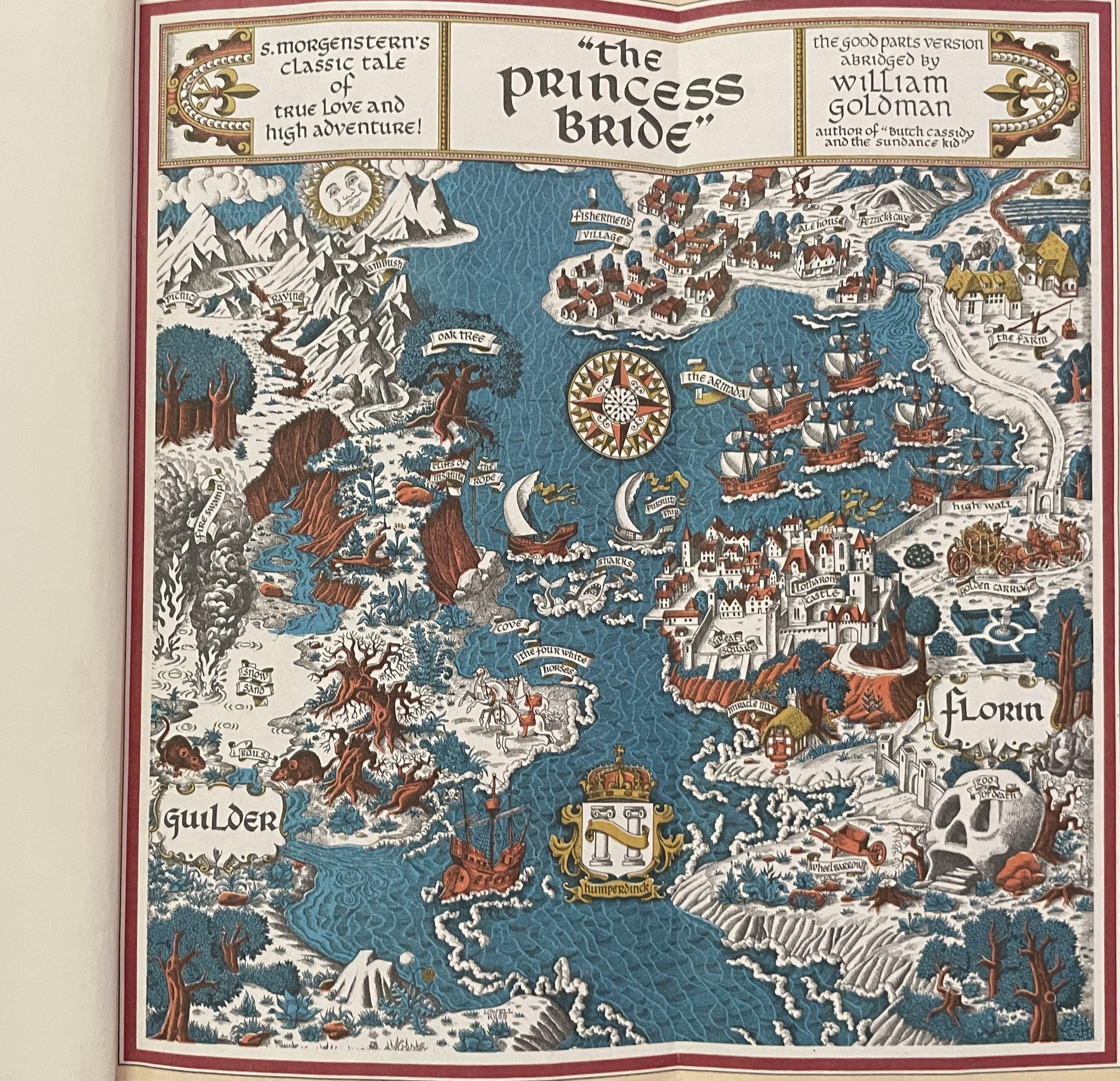 When I first saw this map in the first few pages of The Princess Bride, I focused on the geographical details so that the story would make more sense to me as I read it.  Now that I’m older and don’t care as much about world-building, I pay more attention to the upper right corner.