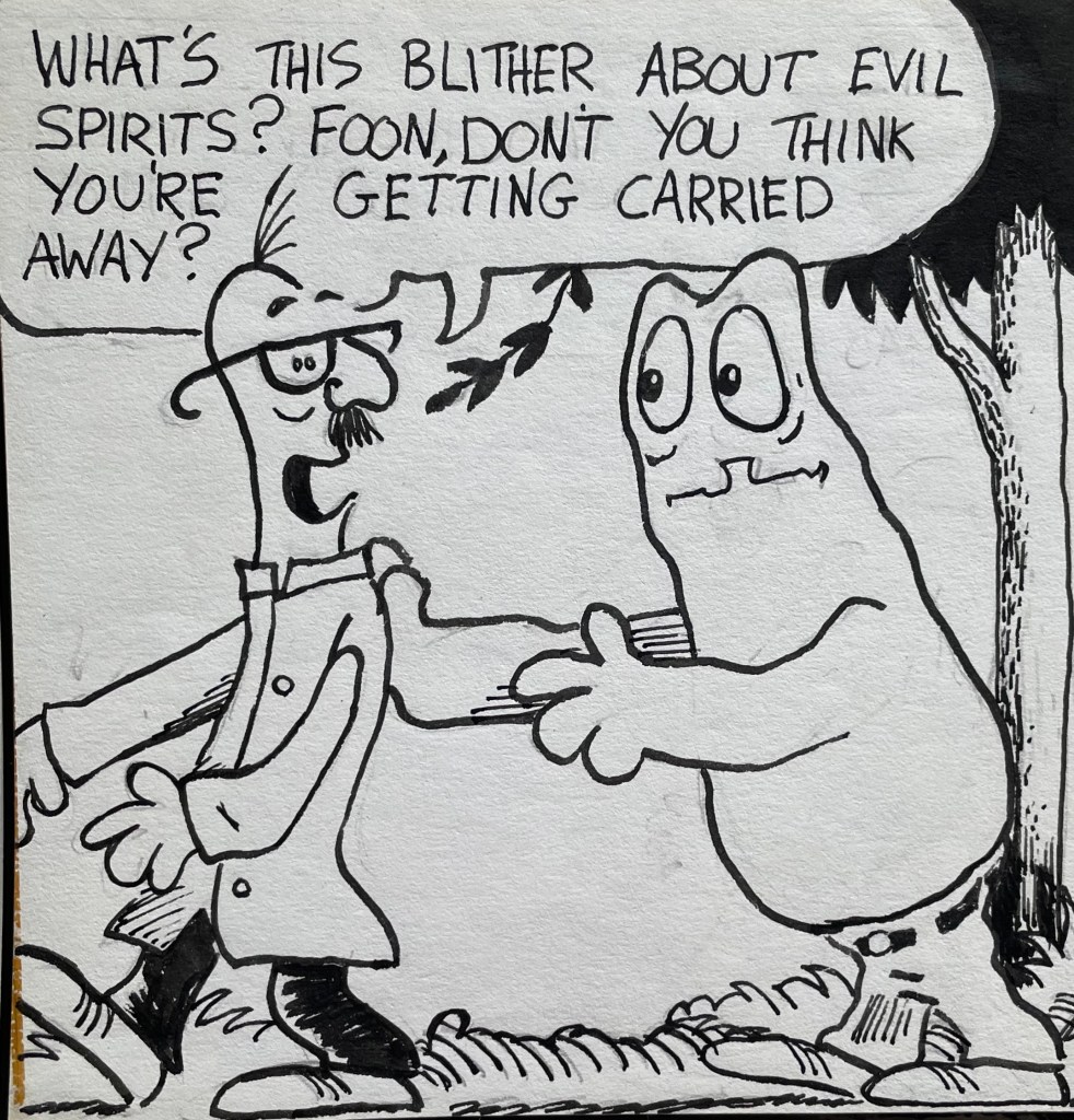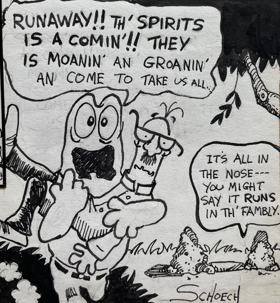 Enough blither (or blather) about these words! Here’s the 25th episode of my older brother’s comic strip “Calloway the Castaway,” published in our local weekly newspaper back in 1979.