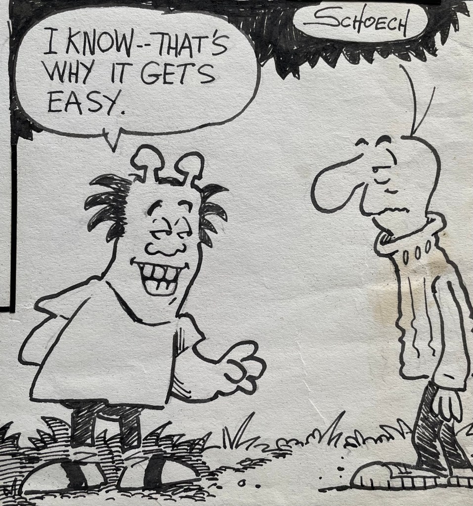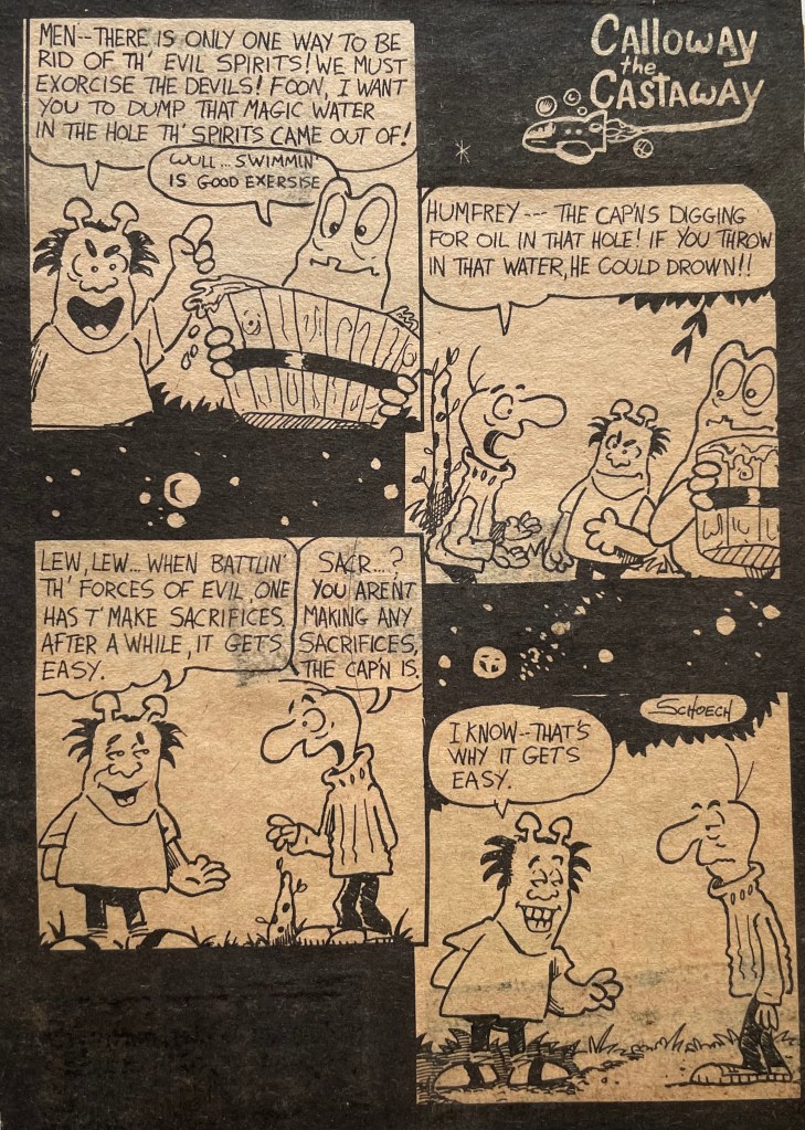 Unfortunately, “Calloway the Castaway” had several factors working against it back in 1979. The comic strip appeared in a small suburban weekly newspaper with few readers. The small weekly newspaper didn’t pay my older brother anything for his weekly cartoon. And my older brother was 21 and broke. When he suddenly had the opportunity to move to the East Coast to pursue other endeavors (including a woman), he took it.