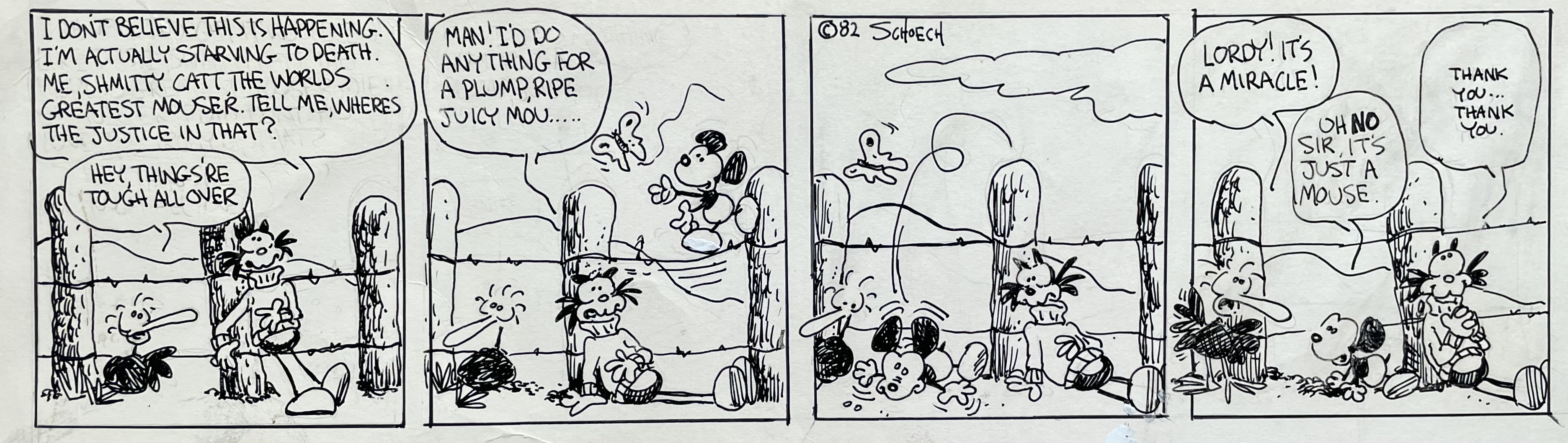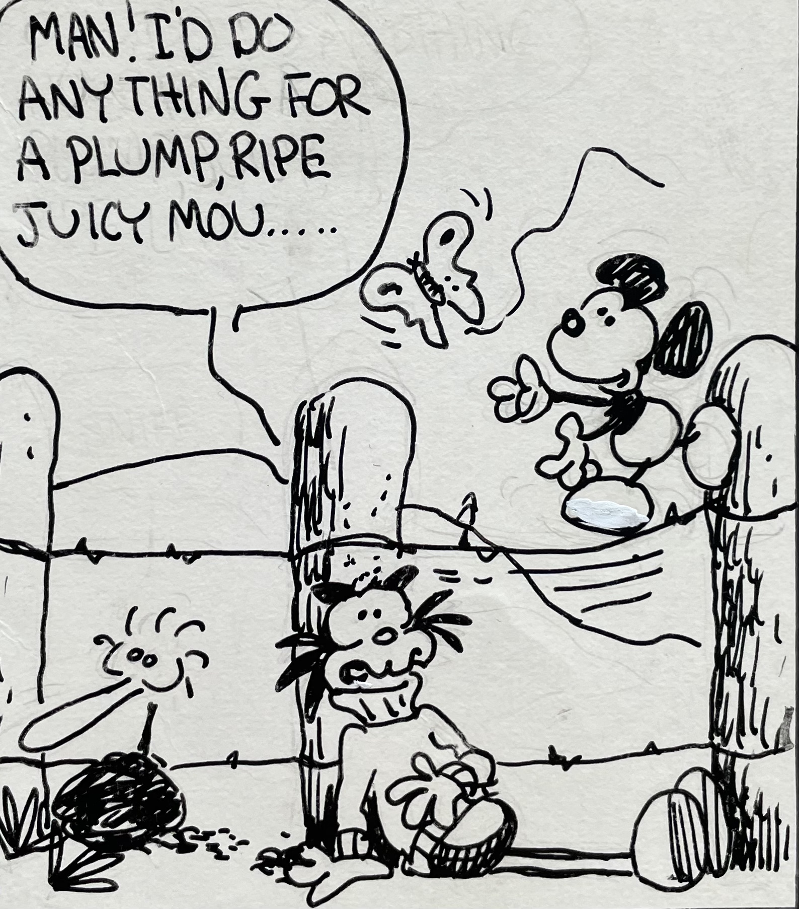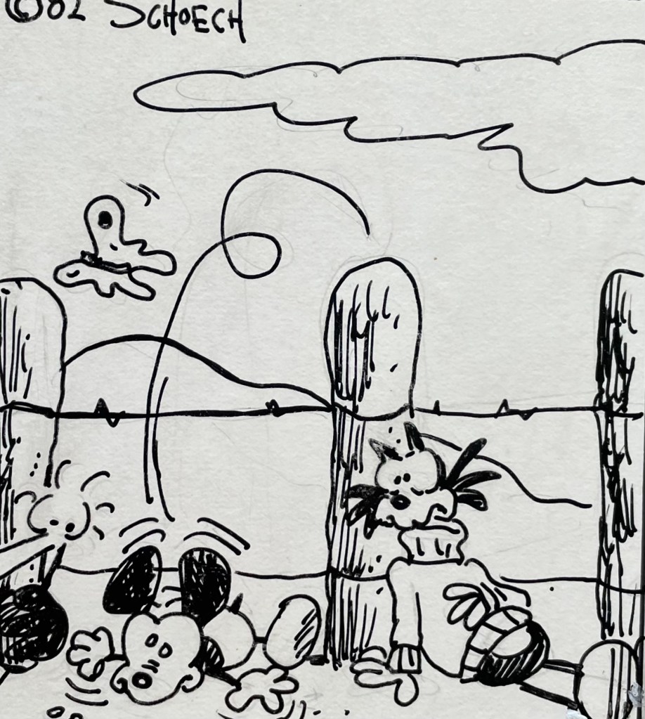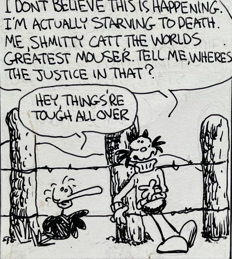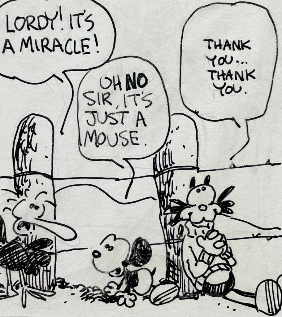 Unlike my brother’s 1979 comic strip Calloway the Castaway, Dummo Mouse has never been published anywhere, not even in a local weekly newspaper. My brother drew these over 40 years ago, and you’re one of the first people to read this, other than a few family members and friends and a few agents for syndicated comic strip artists back in the early 1980s.