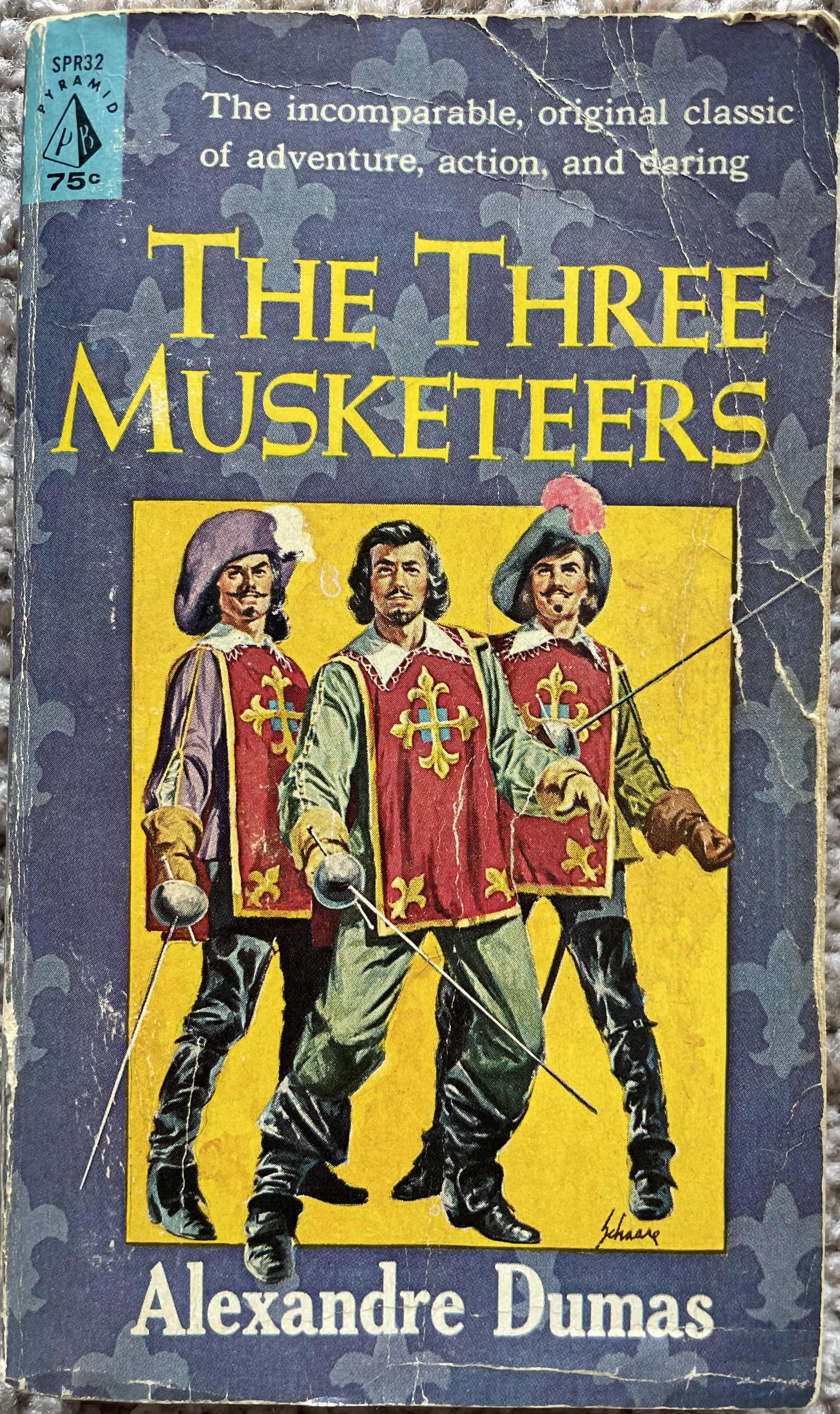 When I was in 8th grade, I found an old paperback copy of The Three Musketeers at the local thrift store in my hometown. The thrift store had a pretty decent used book collection for a dumpy store (now that I think about it, all used books stores back then were dumpy too), and I took up the challenge of reading an unabridged version with tiny print. The book itself actually wasn’t much of a challenge. The small print, however, might have ruined my eyesight. A few months later, I failed a vision test at school and had to get glasses. I blame books with small print like this copy of The Three Musketeers.