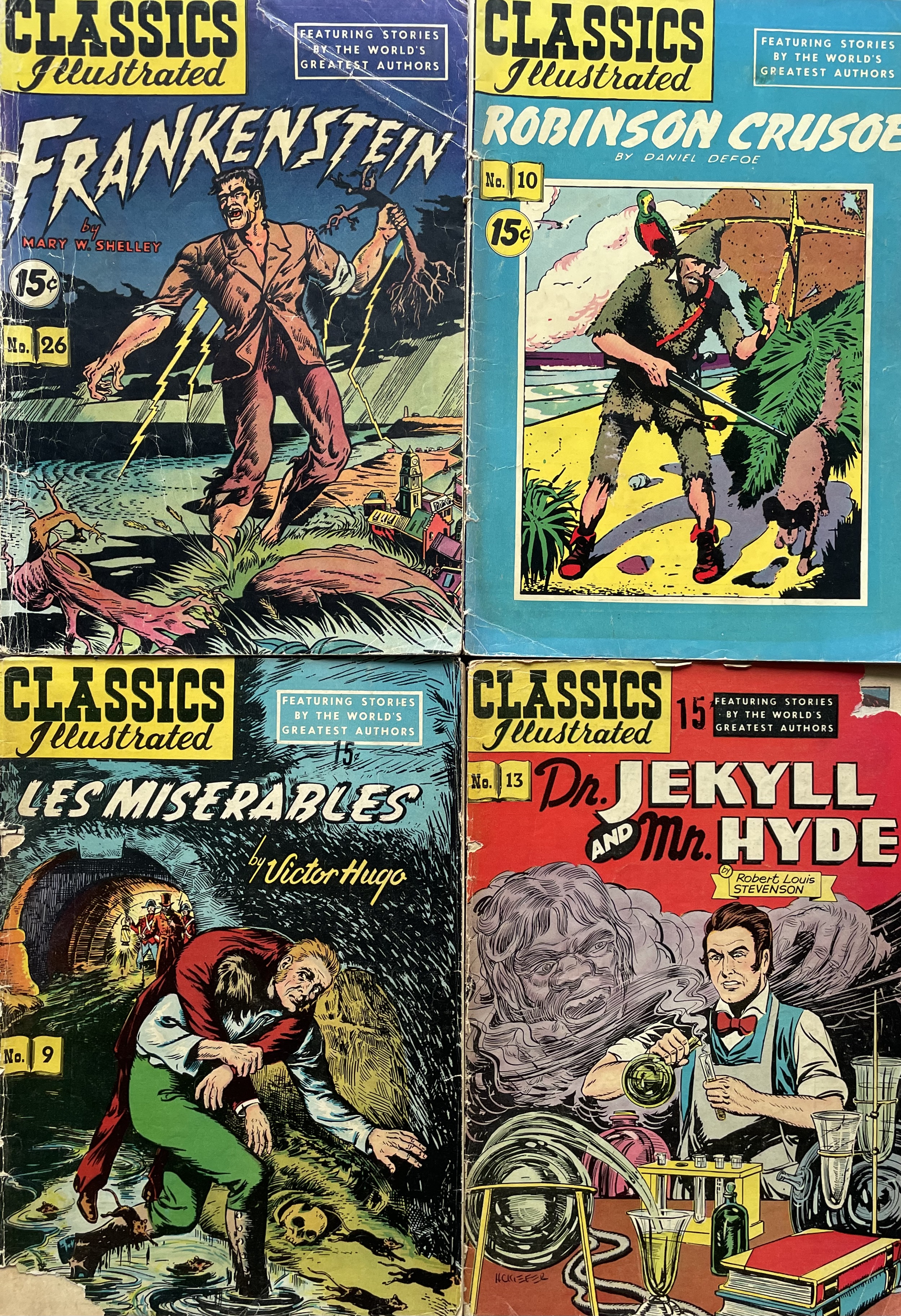 My family was loud and somewhat violent and had weird stuff going on (that I didn’t know was weird until I was an adult), but we always had a bunch of stuff to read around the house. My family had a subscription to the daily newspaper delivered to out front porch every morning. We had old hardback novels on book shelves. We had several magazine subscriptions. My older brother and I were both allowed to collect comic books. And my dad had even kept his small collection of Classics Illustrated comic books stored in a small cabinet in my parent’s bedroom.