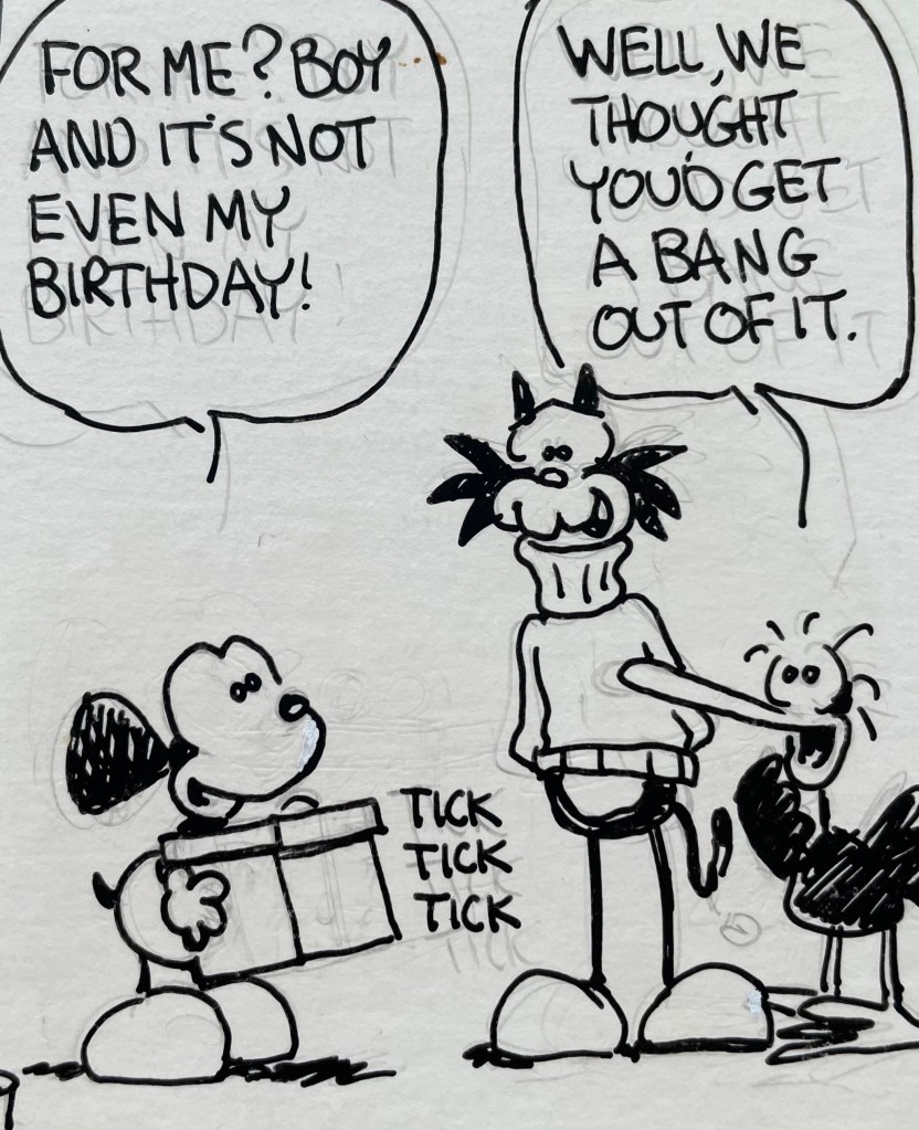 Like last weekend’s episode, today’s comic strip seems like a standard cat vs. mouse cartoon. But I’m telling you, things are going to change!