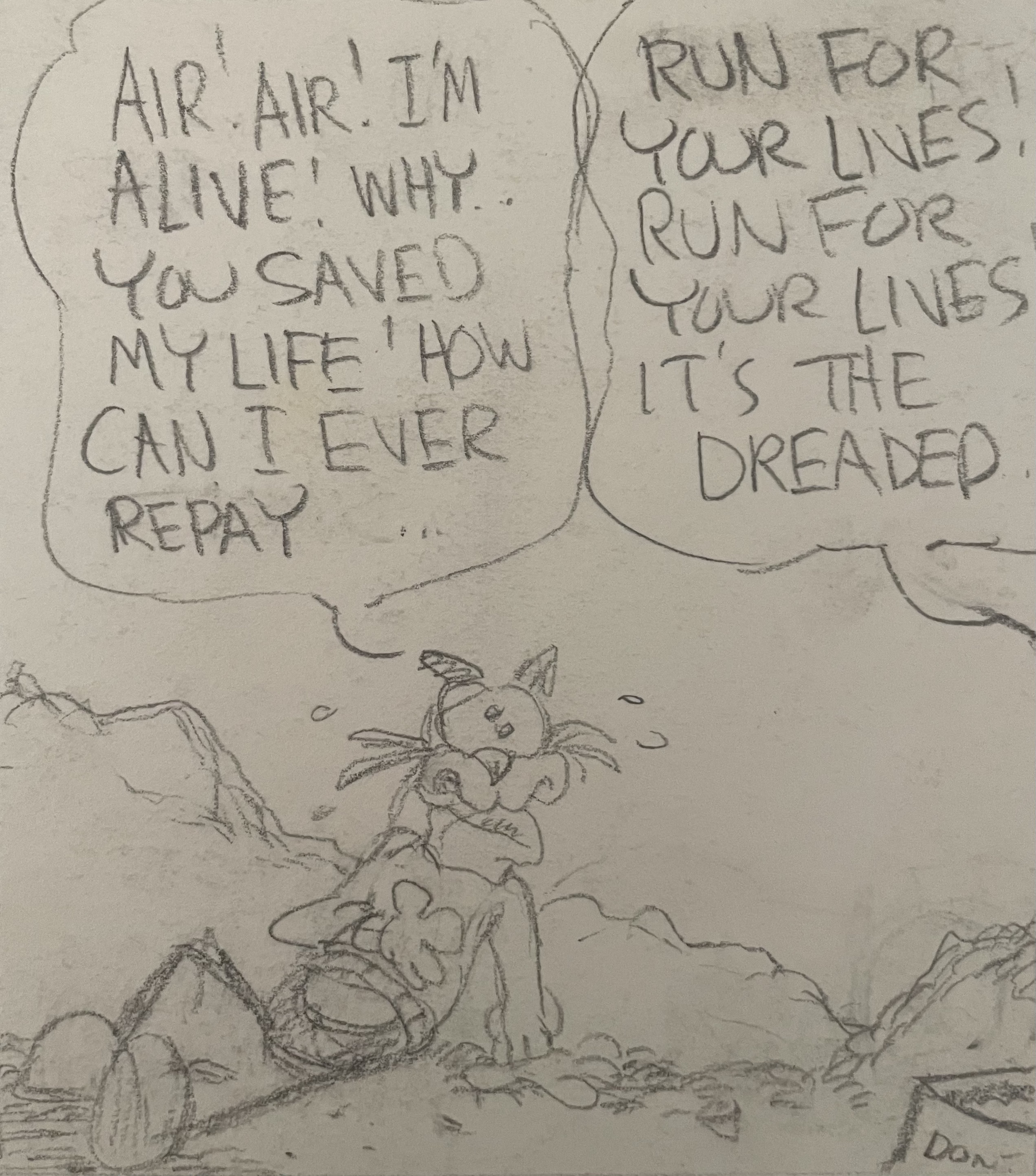 For more of my older brother’s comic strips see Sunday Funnies and Calloway the Castaway.