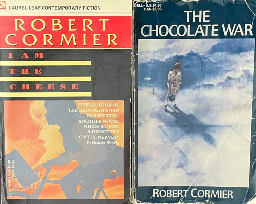 I didn’t read any Robert Cormier books either until I was an adult. Even when I received two of these books The Chocolate War and I Am The Cheese as a combined Christmas gift back in the 1970s, I didn’t read them right away. I hope I at least acted enthusiastic, but I probably went straight to Rock ‘em Sock ‘em Robots (I think I’m mixing up my nostalgic memories). I liked to read, but I wasn’t interested in books about boys my age or teenagers. I preferred books written about adults. Adults lived more interesting lives than kids did (at least in the books I read, they did).
