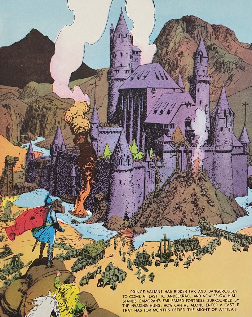 Anyway, the point is that Prince Valiant was perfect for the Sunday newspaper in the late 1930s and beyond. Back when newspapers were relevant, the Sunday newspaper was a big deal, the most important newspaper of the week. I still miss the Sunday newspaper. I had it backwards as a kid; Prince Valiant was too good for comic books, and the newspaper was the only media that could handle it.