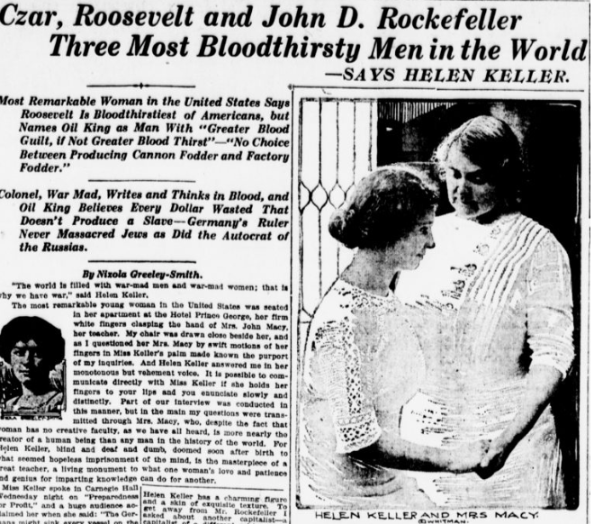 Believers of the Helen Keller story might ask: why would Helen Keller’s handlers fake/embellish her accomplishments? My question is: Why wouldn’t they do this? I mean, I know lying is wrong, but a lot of people think money and status are more important than honesty, and the people surrounding Helen Keller could have been like that. If you’ve been raised on social media like today’s youngsters and have seen the ways that people sell themselves for money and status, propping up Helen Keller as a genius is an almost benign fraud compared to a lot of modern antics. And if part of the Helen Keller story was a hoax, who in the media would have wanted to ruin a great story like that of Helen Keller? To some journalists, the story is everything!