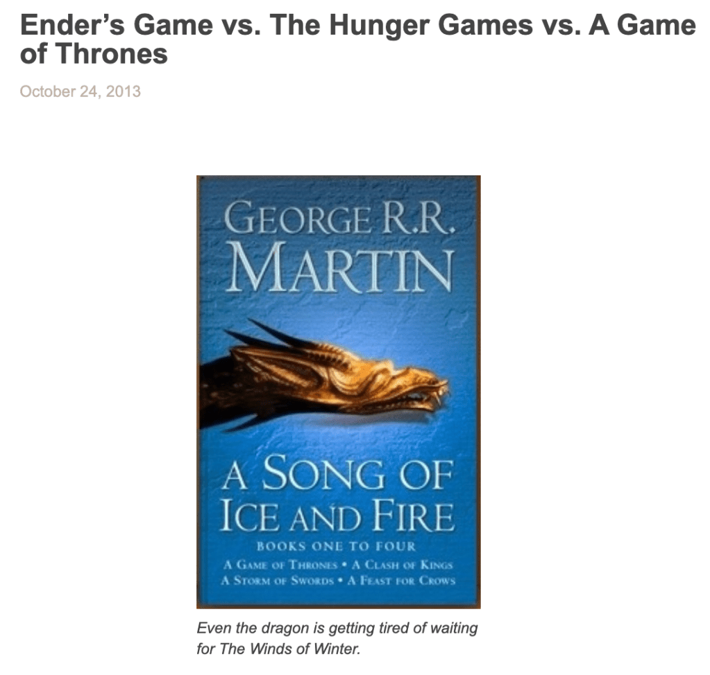 Ender’s Game vs. The Hunger Games vs. A Game of Thrones